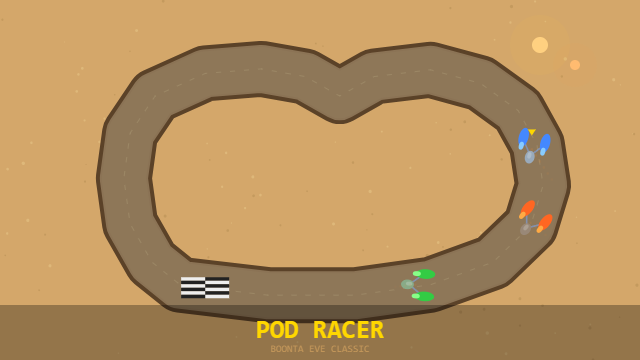 Top-down Boonta Eve racing. Pick your pod, dodge hazards, and set the fastest time.